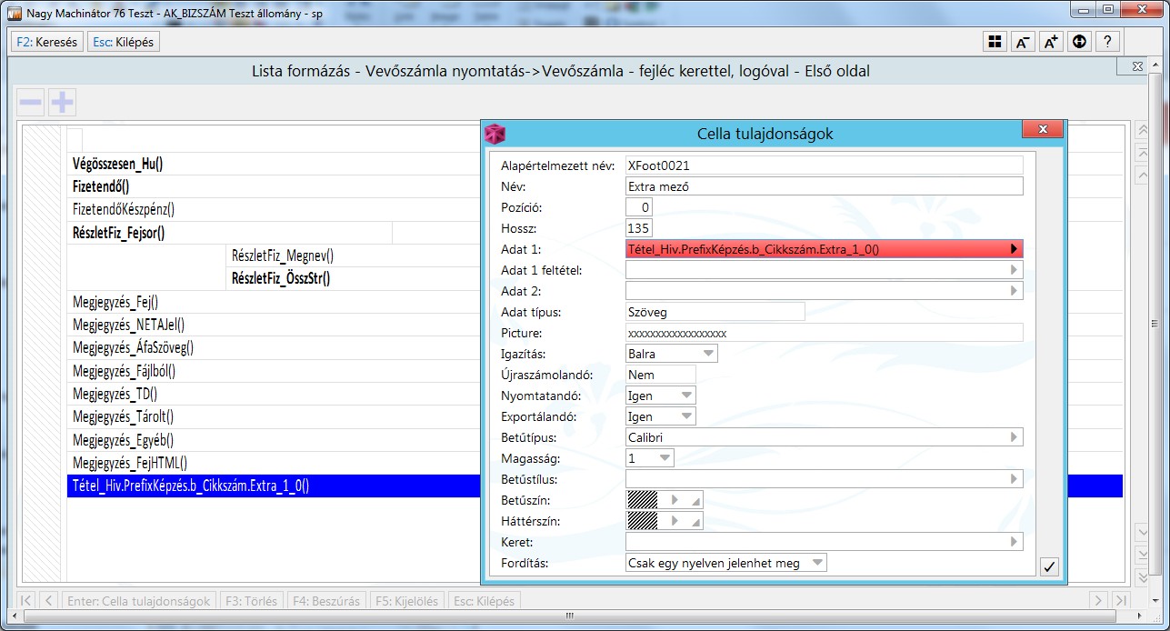 Ezt követően a szerkesztett számlaformátumunkba be kell szúri az extra mezőt az adatok után.