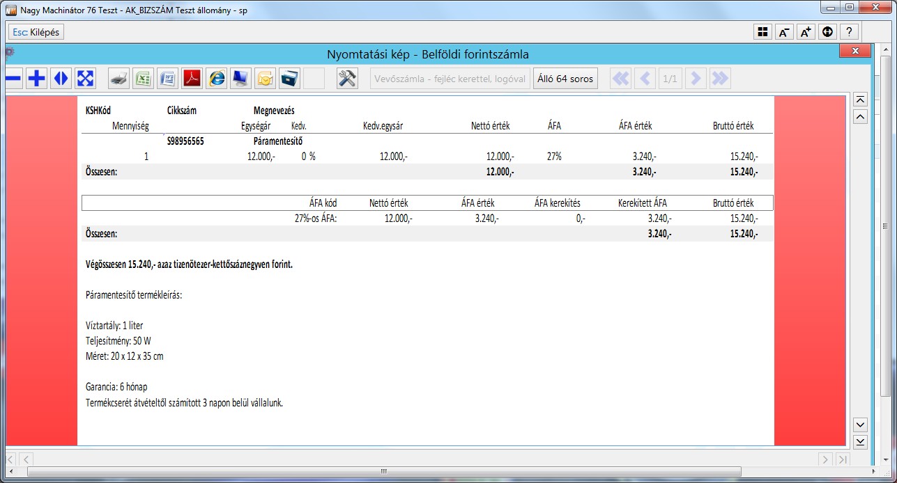 Amennyiben a kiszámlázott cikkhez tartozik leírás az a számla alján meg fog jelenni.