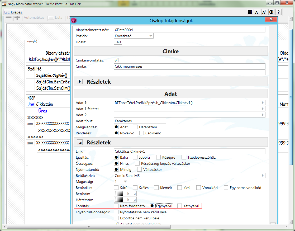 A programban készült listák lefordíthatók szabadon definiált nyelvekre. -> Részletek