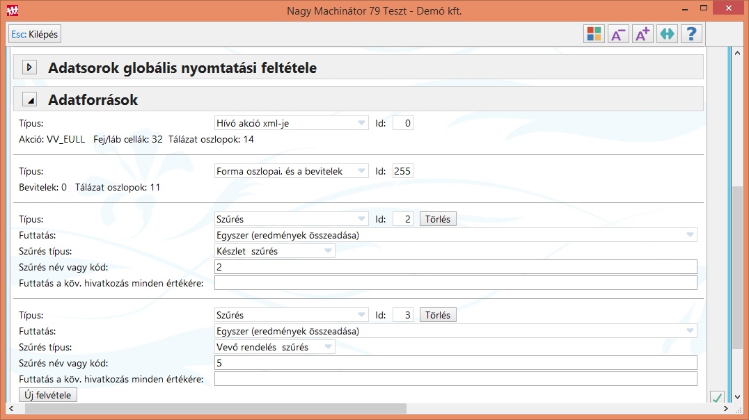A listaforma lista tulajdonásokban fel kell vennünk a raktárforgalmi- és rendelés-szűrést és azok kódját az alábbi kép szerint.