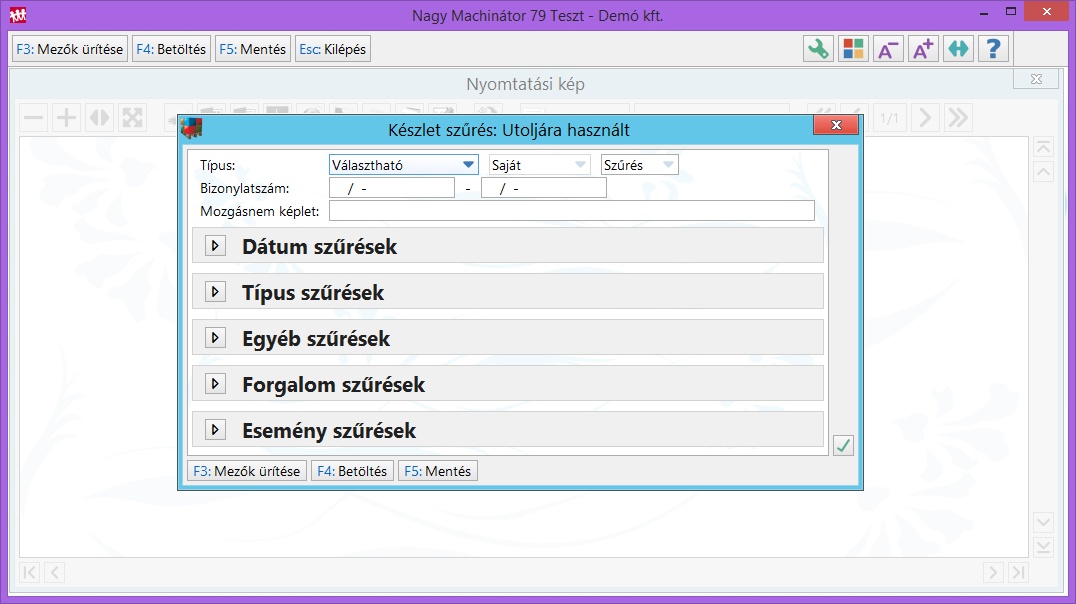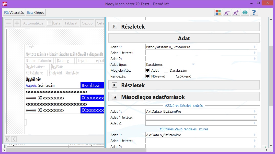 Például bizonylatszám cella esetén természetesen mind a raktárforgalom-, mind a rendelés-szűrésnél a bizonylatszámra kell hivatkozni, mivel mindegyik listából ez az adat érdekel mindket ebben az oszlopban.