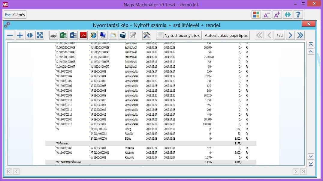 Vevő egyenleg lista tartalmazza az ügyfélhez tartozó nyitott szállítóleveleket és rendeléseket is.