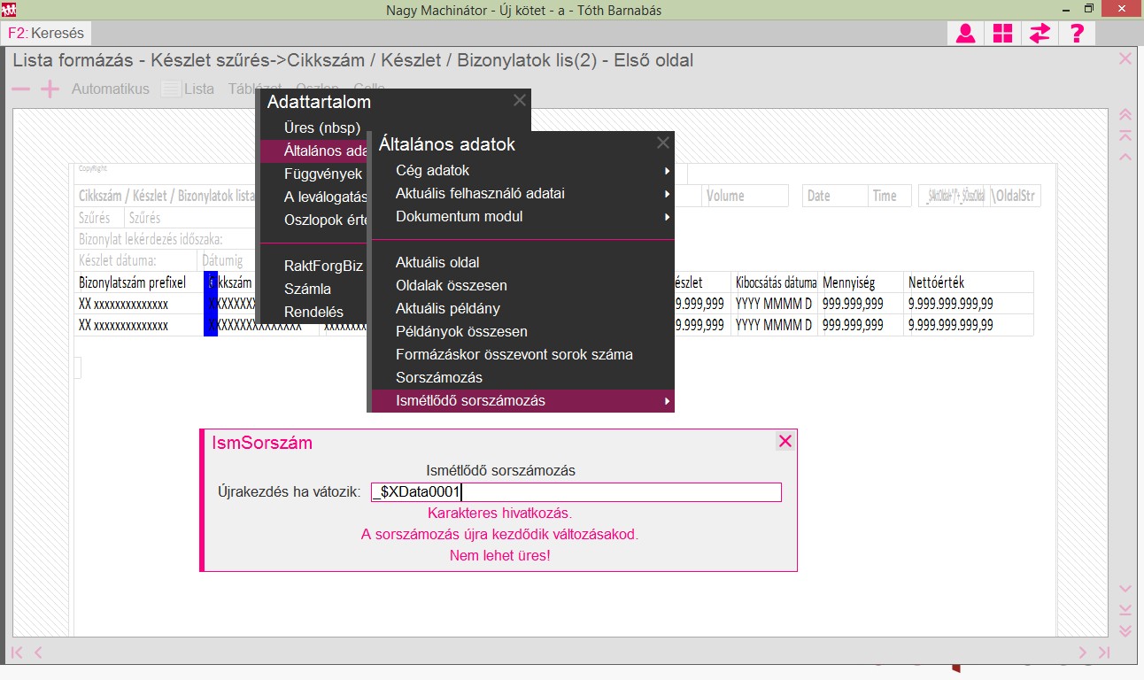 A megoldás az Ismétlődő sorszámozás függvény használata.