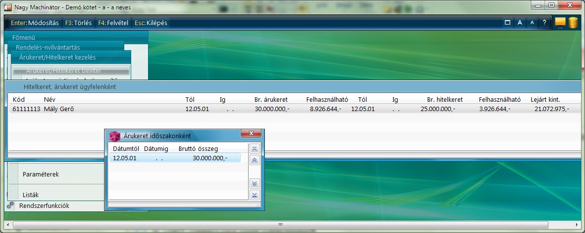 Az árukeret / hitelkeret funkció segítségével a kintlevőségeink növekedését lehet megakadályozni.