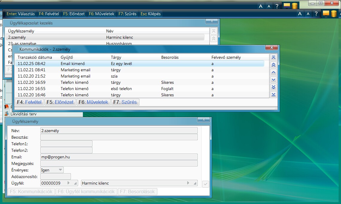 A funkció segítségével Ügyfeleinknél alkalmazott Ügyféltörzsbe felvett személyekkel folytatott kommunikációkat tudjuk lekérdezni.