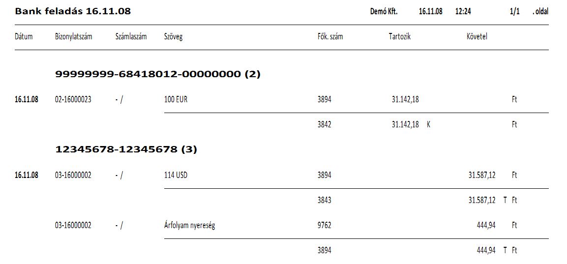 5. Ezek után a főkönyvi feladás az átvezetési számlán keresztül leveszi a forrás bankszámla számáról az értéket és átteszi a cél bankszámla számára, szükség esetben a cél bankszámla számához egy árfolyam különbözetet is felad.