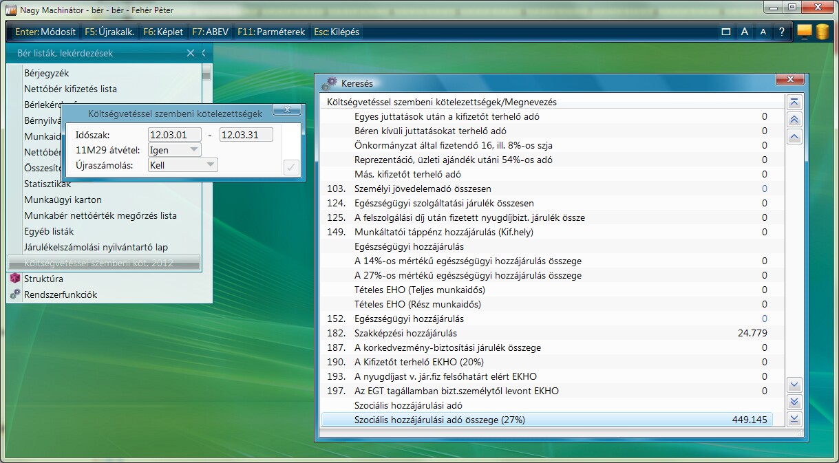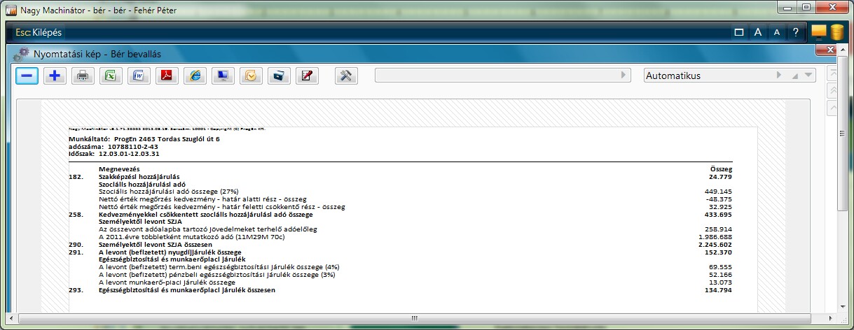 A funkcióban az egyes adónemkódokra átutalandó összegeket összegzi a program.