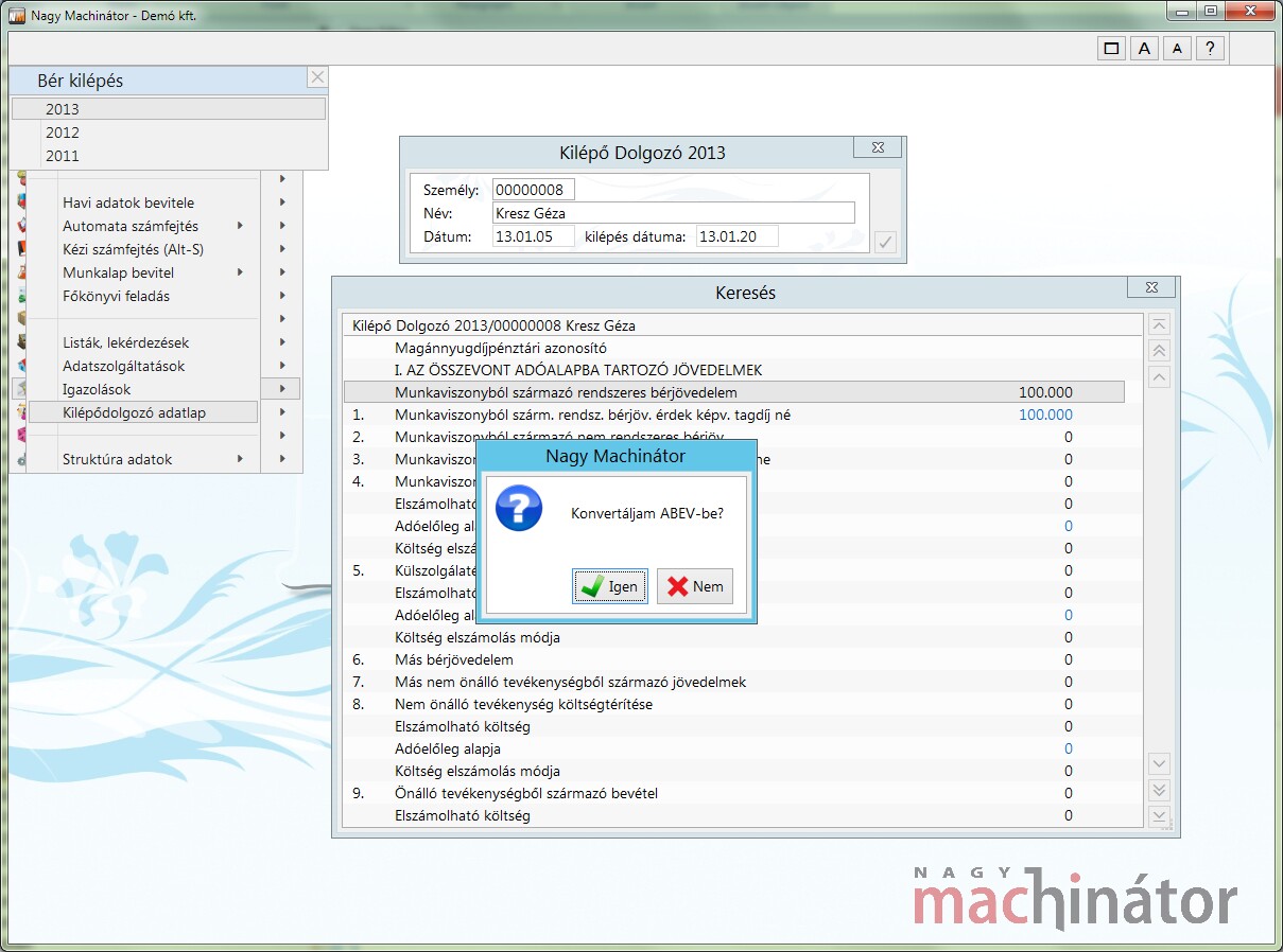 F4:Lezárás megnyomása után a program felajánlja, hogy áttölti az adatokat az ÁNYK-ba (Abev).