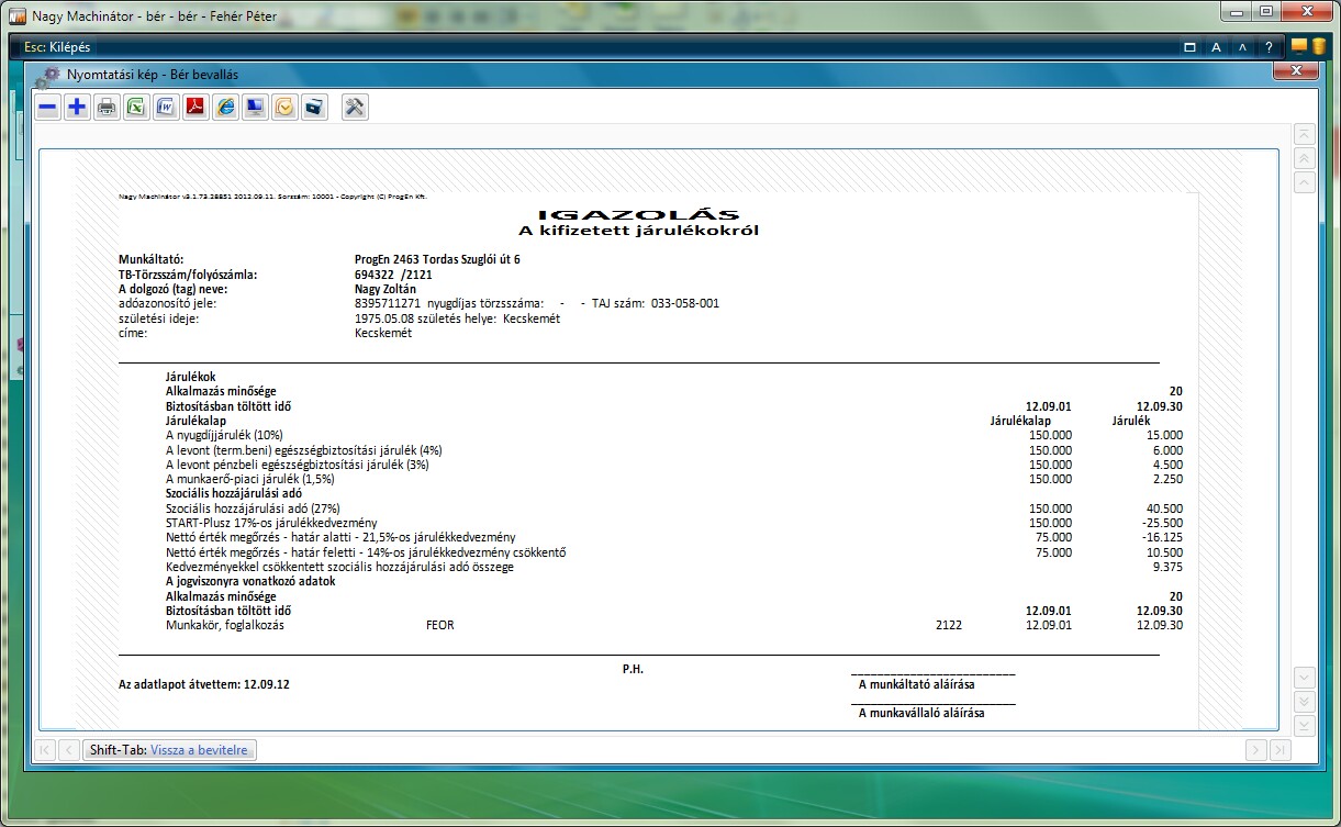 Az akcióval igazolást készíthetünk a levont járulékokról.