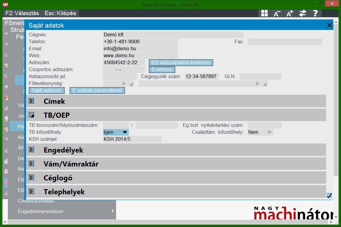 A funkció elindulásának feltétele, hogy a Saját címben a TB kifizetőhely mezőt Igen-re kell állítani.