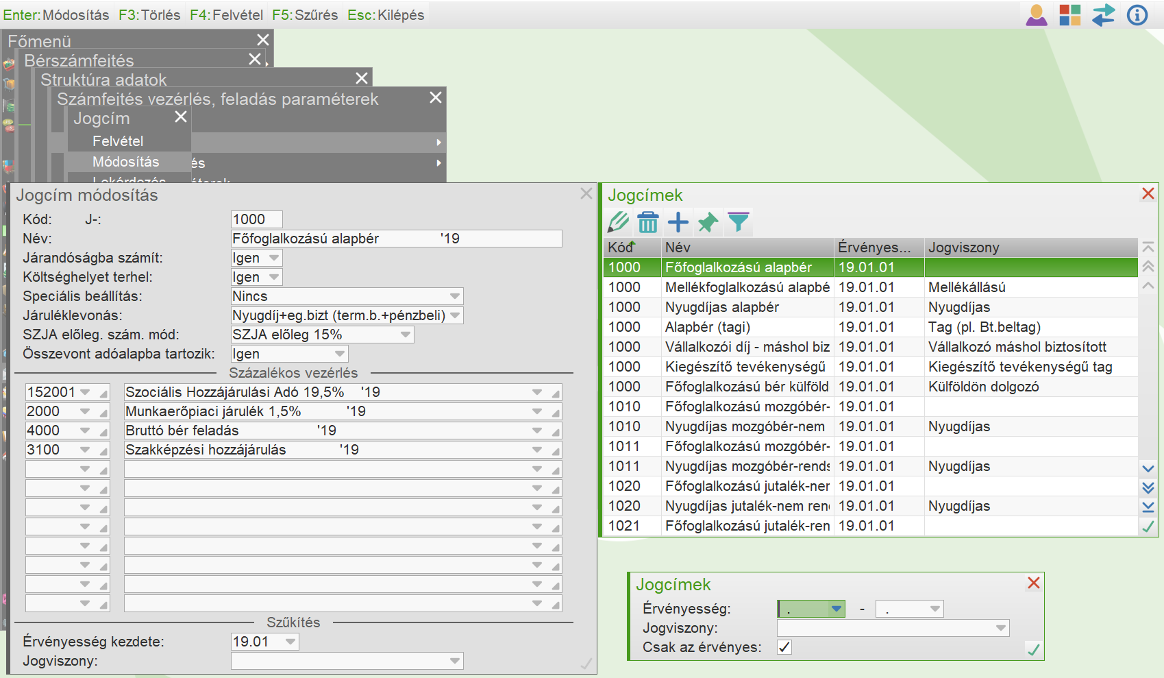 A program az érvényesség kezdete mezőben beállított hónaptól (évszámot és hónapot adhatunk meg) veszi figyelembe a jogcímet. |