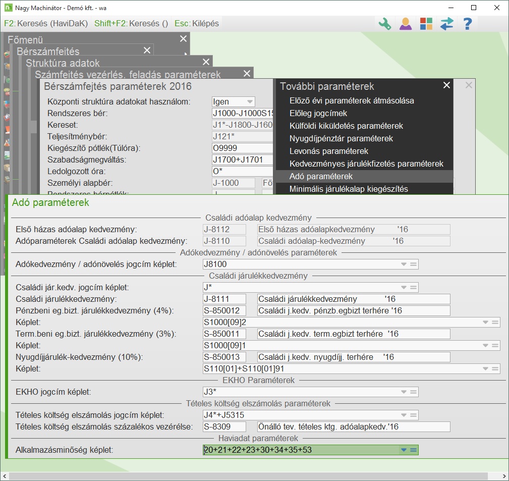 A képletben alapértéken nem található meg pl. a 41-es alkalmazás minőség, hiszen egy megbízási szerződés rögzítéséhez nincsen szükség időadatokra. -> Munkavégzésre irányuló egyéb jogviszony számfejtése