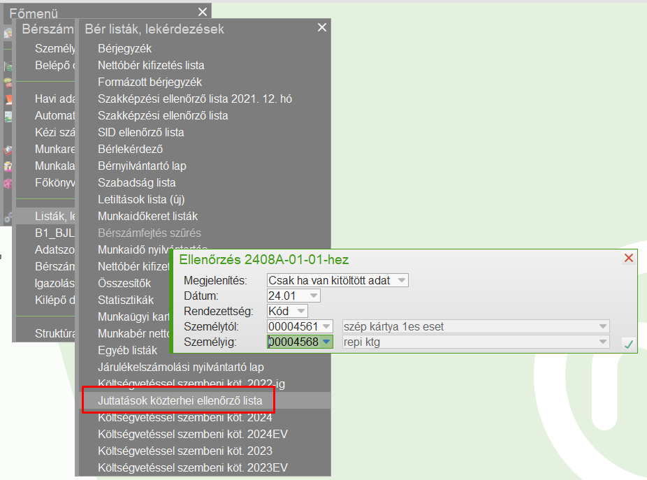 A dolgozónak minden hónapban J92084-es jogcímen 37.500 ft, J92064-es jogcímen 2.500 Ft kerül számfejtésre.