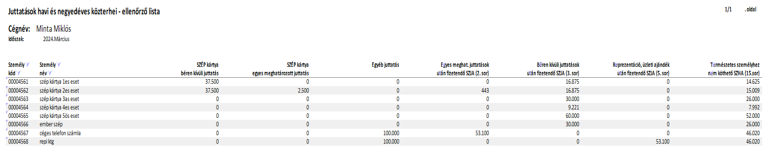 A listát havonta lehet lekérni, és személyenként mutatja az egyes juttatásokat és az aktuális hónapban bevallandó és megfizetendő közterheket a 08A-01-01 lap sorainak megfelelően.