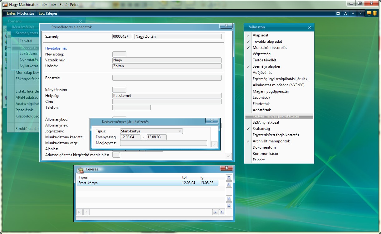Az érvényességi tartomány megadása, amíg a kedvezményt figyelembe kell venni. Figyelem! Az Érvényesség kezdete dátumba nem a kártya kiadásának dátumát kell írni. A Foglakoztatási és Szociális hivatal állásfoglalása alapján a foglalkoztatás első évének kezdete, vagyis az első évre járó kedvezmény az első foglalkoztatás kezdetét követő egy éven belül vehető igénybe. Ebből az következik, hogy amennyiben Önök a Start kártyás első foglalkoztatója, akkor a belépés dátumát kell beírni az érvényesség első dátumába és az érvényesség vége a start kártyán feltüntetett érvényességi határidő. Azonban, ha nem Önök az első foglalkoztató, akkor a munkavállalótól kell megkérdezni, hogy mikor volt az első foglalkoztatás kezdete. Ezzel szemben rendelkezésünkre áll egy APEH levél is, amelynek az az értelme, hogy ha még érvényes a kártya munkáltatóhoz történő belépés során, akkor az első évre járó kedvezmény a foglalkoztatás megkezdésekor kezdődik el és nem kell figyelembe venni, hogy máshol is volt már foglalkoztatva a dolgozó. |