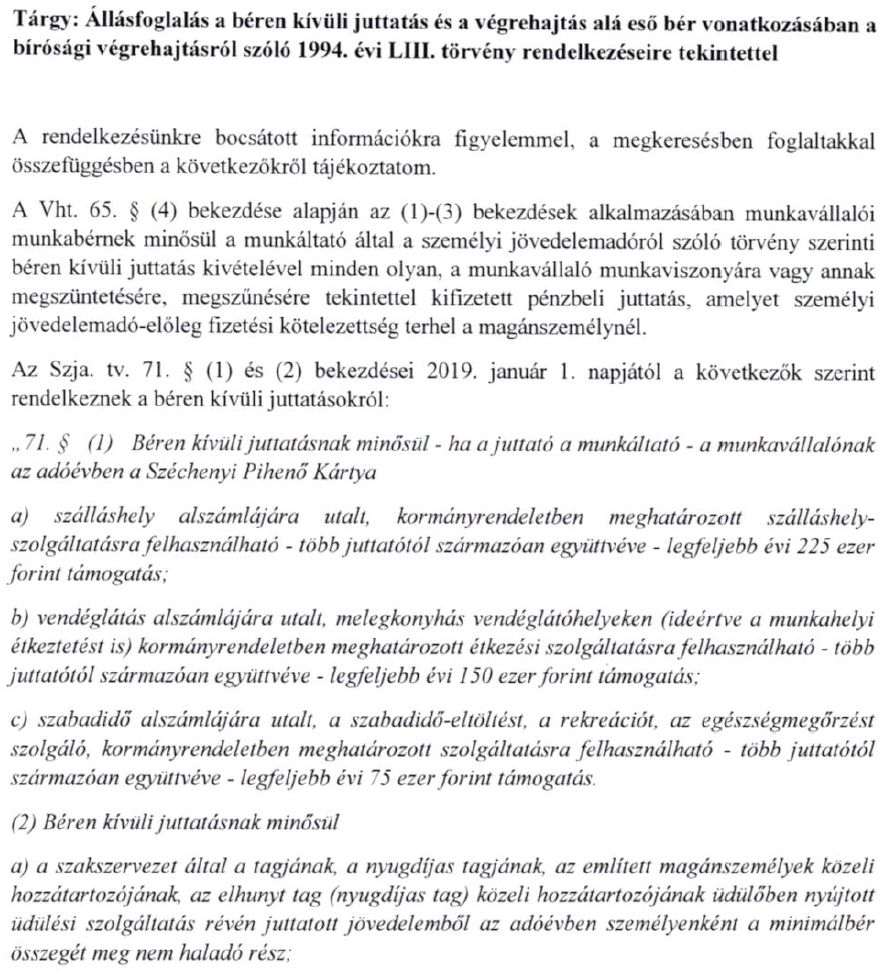 A 2019-től érvényes SZJA törvény értelmében a béren kívüli juttatások kedvezményesen adózó köre jelentősen leszűkült. A nem kedvezményes adózás alá eső juttatások esetébe felmerült a kérdés, hogy mivel bérként adózó tételként kell őket számfejteni, a letiltásoknak alapját képezik-e.