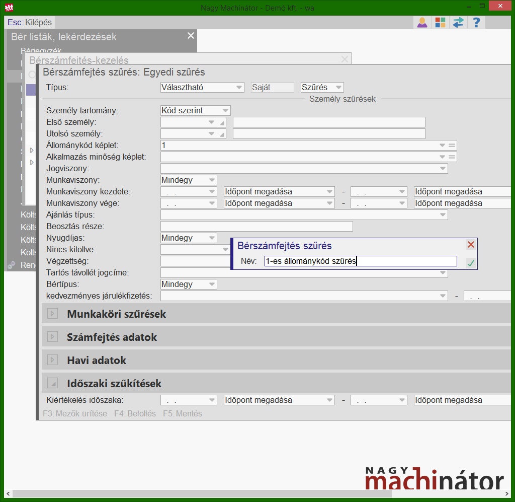 Az F5:Mentés funkciógomb használatával egy általunk választott néven mentsük el a beparaméterezett szűrést.