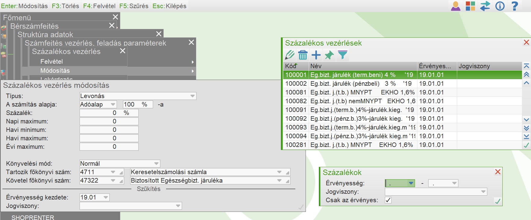 A program az érvényesség kezdete mezőben beállított hónaptól (évszámot és hónapot adhatunk meg) veszi figyelembe a százalékos vezérlést. |