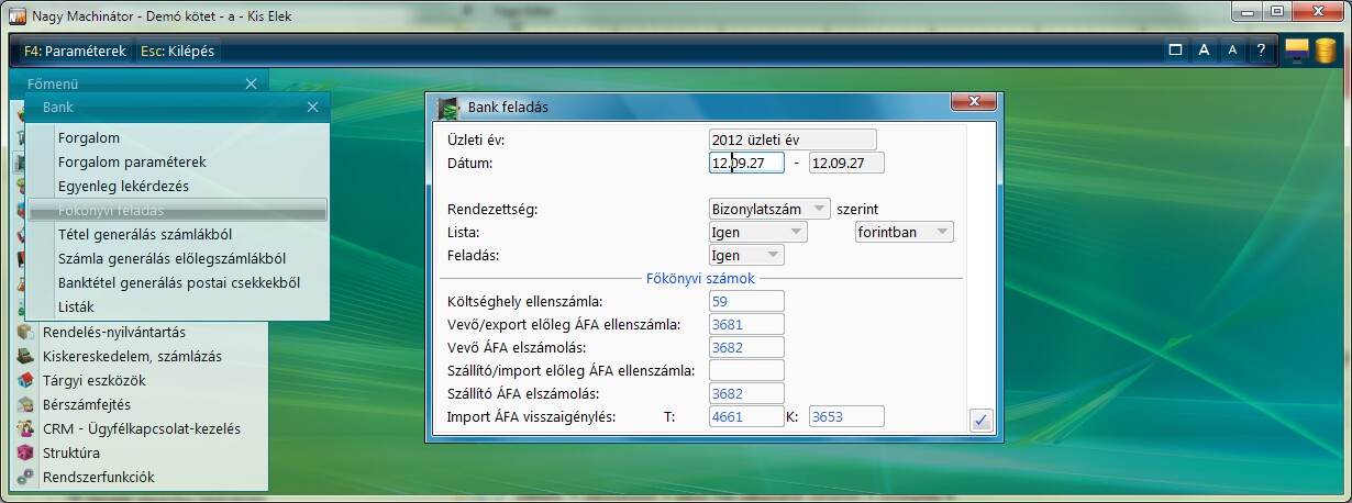 Dátum: A banktételek a banki nap dátumával kerülnek a főkönyvbe.