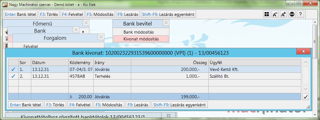 Minden egyes kivonattételen állva Enter lenyomásával a banktétel ablakba kerülünk.