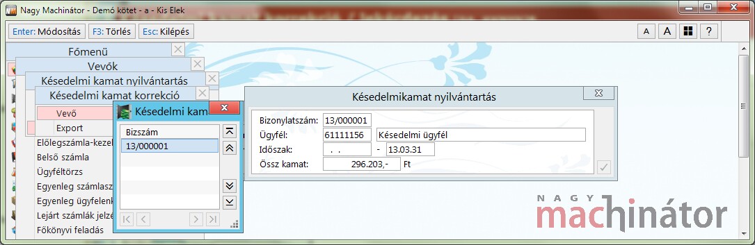 A Késedelmi kamat korrekció funkciót akkor érdemes használni, ha egy késedelmi kamat kifizetésére nincs esély vagy megegyeztünk az ügyféllel a kamat elengedéséről.