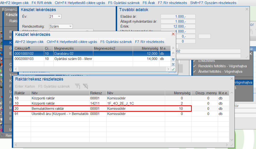 Készletlekérdezés bemutatótermi beszerzés után