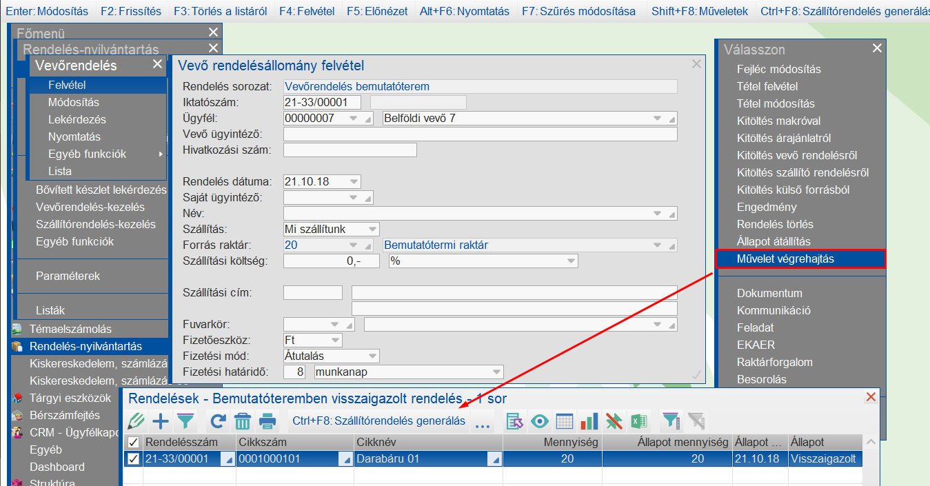 A vevőrendelés sorozat paramézerezése, ahhoz, hogy a közvetlenül le lehessen a szállítórendelést.