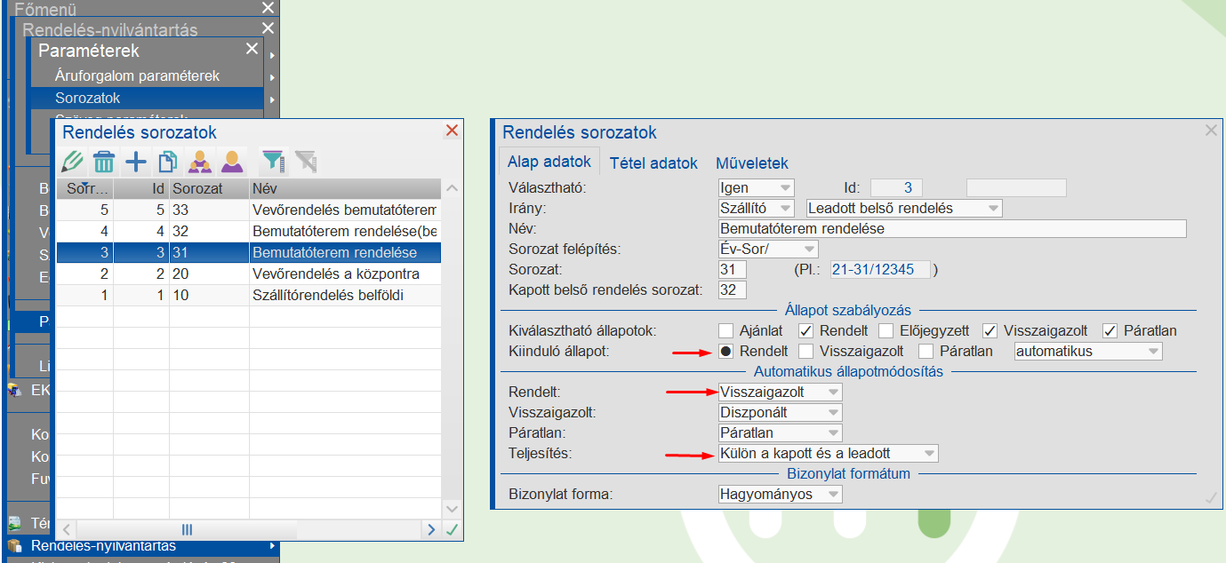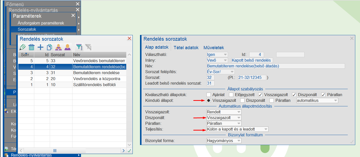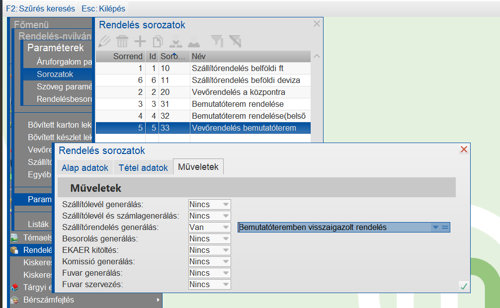 Vevőrendelés sorozat paraméterezése