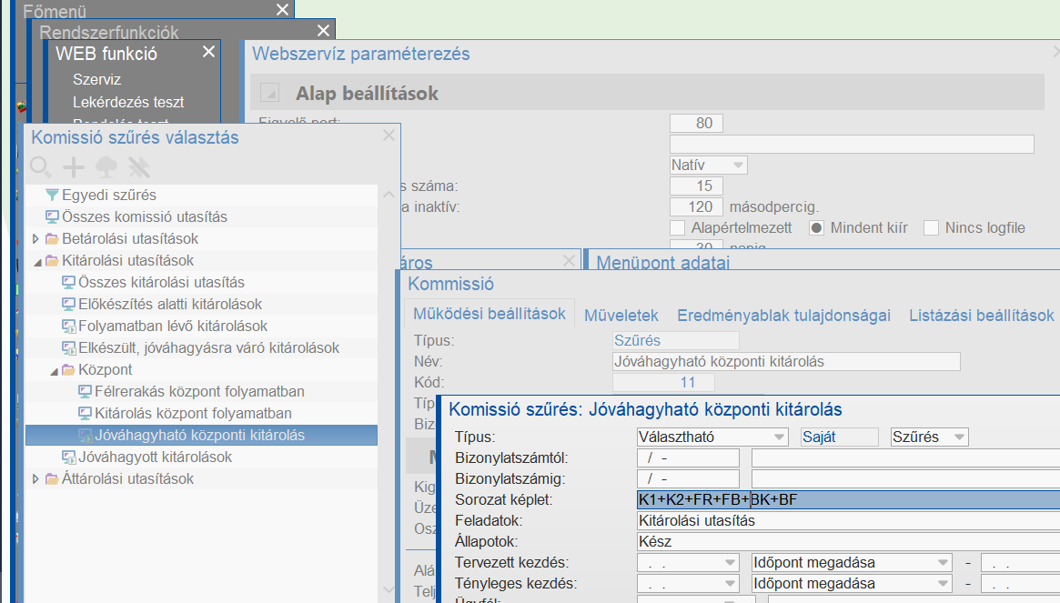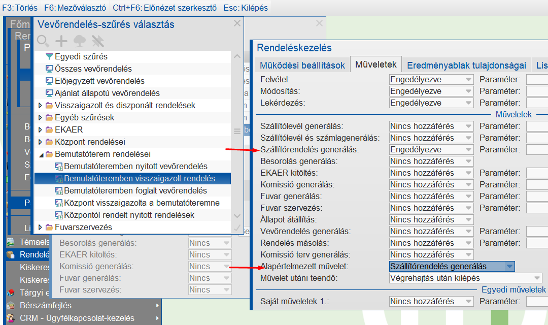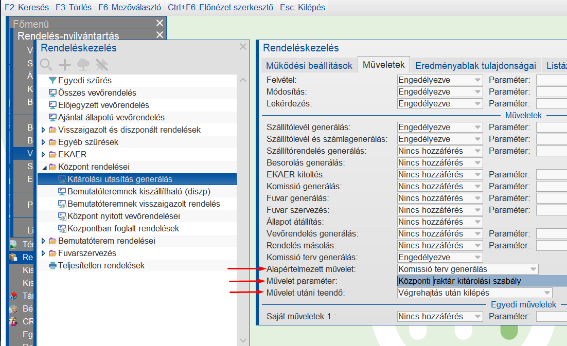Belsőrendelés sorozat művelet jogosultság beállítások