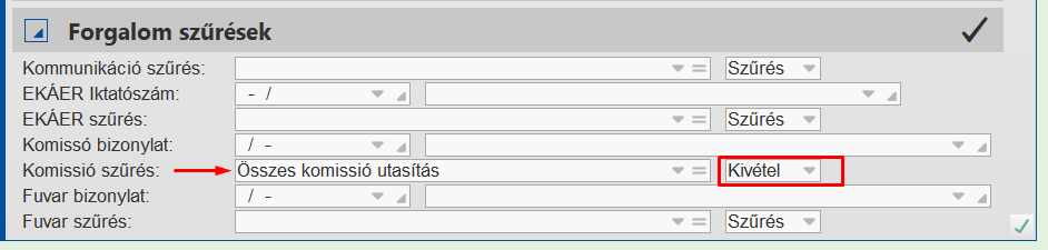 Ellenőrzés művelethez a komissió szűrés paraméterezése