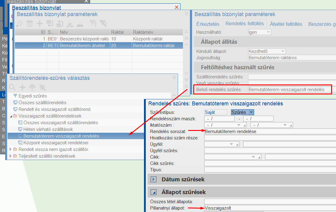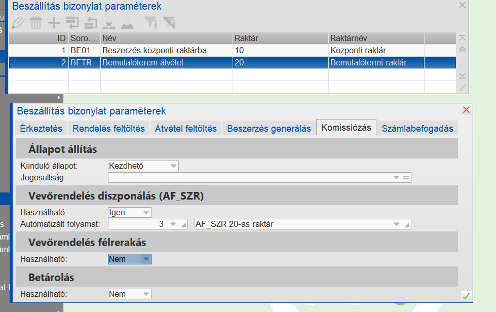 Beszerzés paraméterezés belsőrendelés esetén