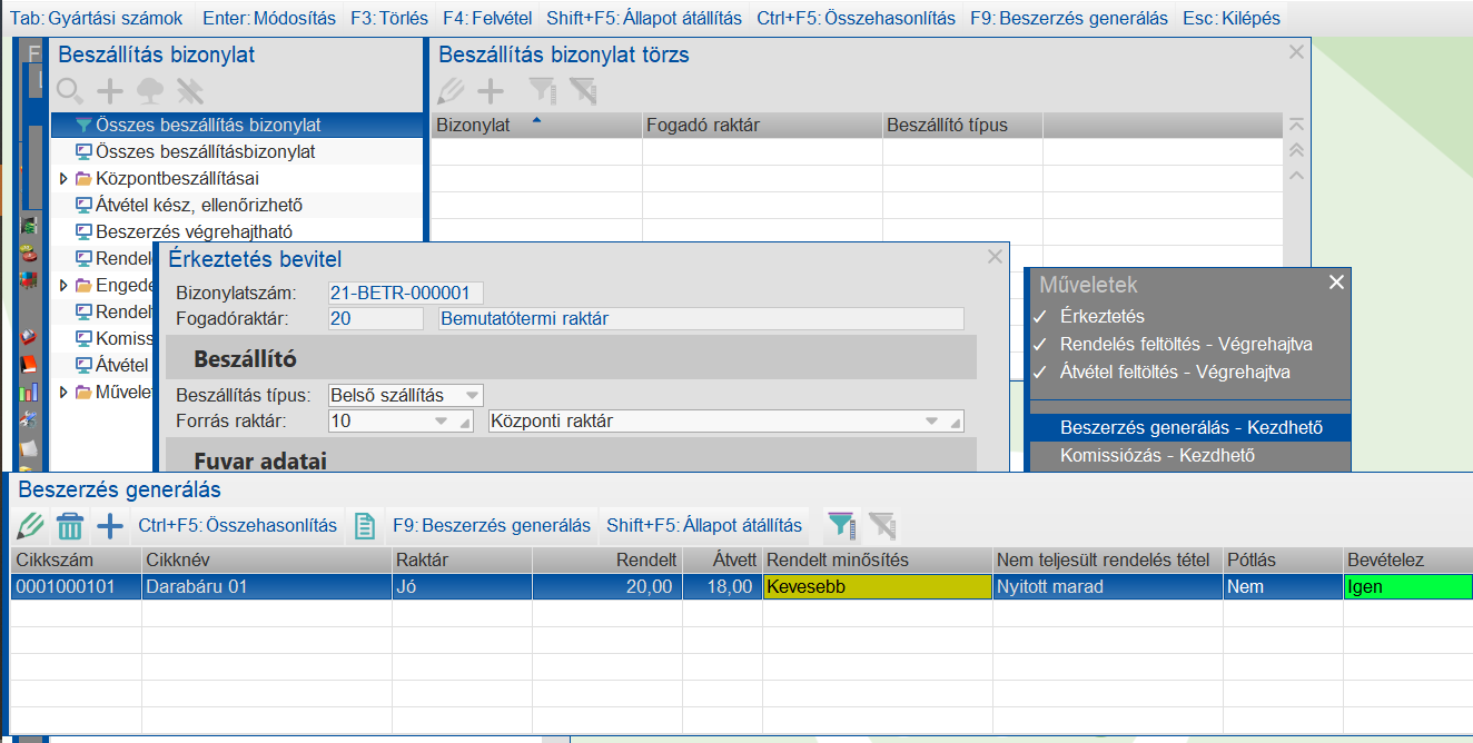 A Beszerzés generálás menüponttól jelen esettanulmányban azt várjuk el, hogy