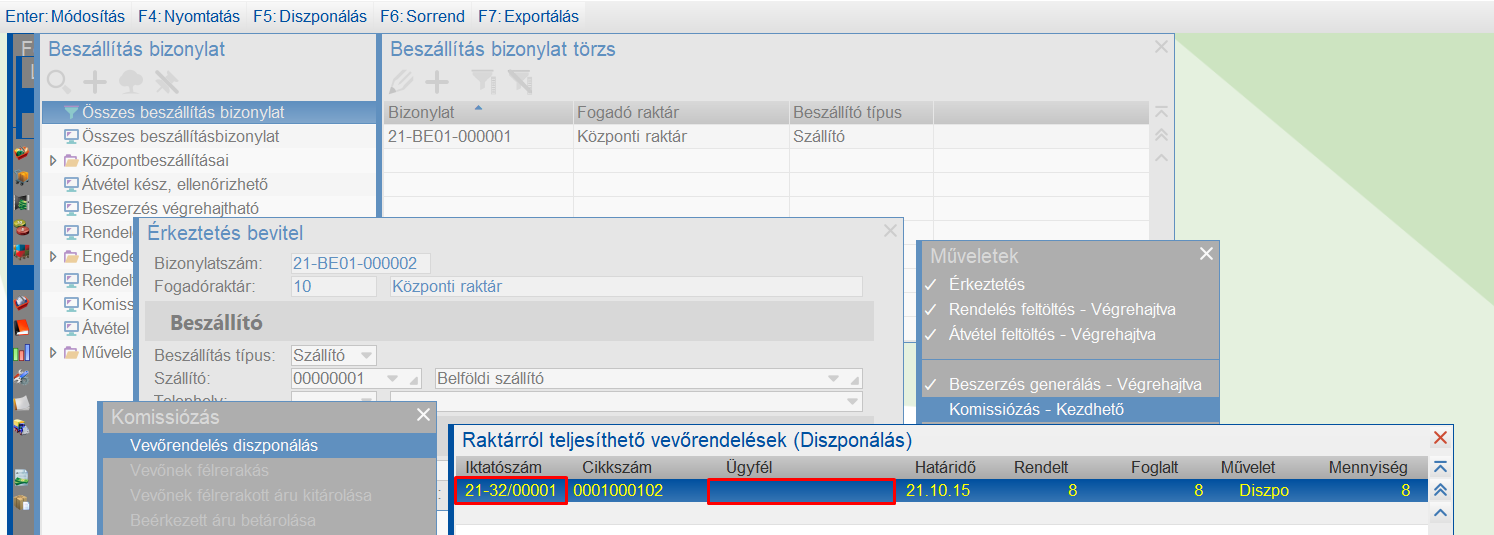 A diszponálás után a belsőrendelés vevőoldali párja diszponált lesz.