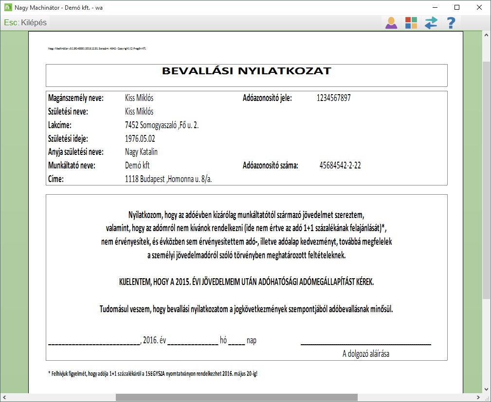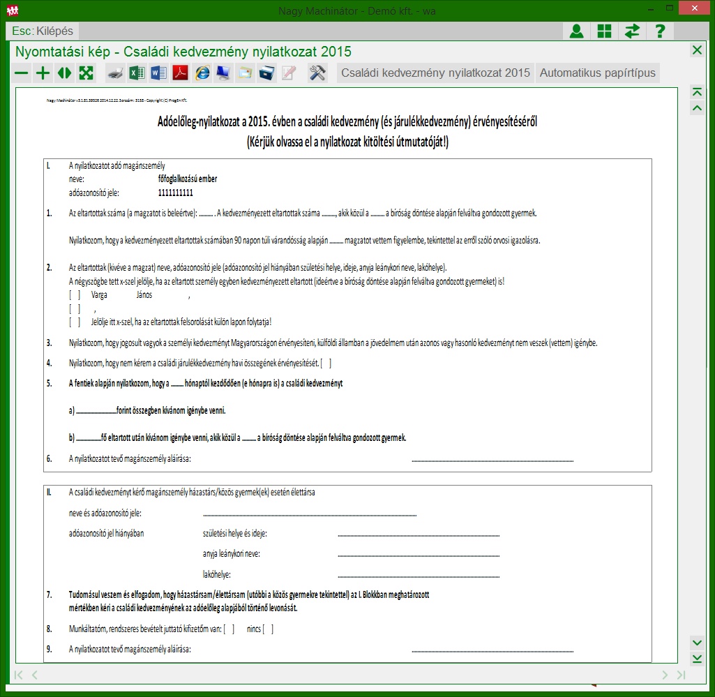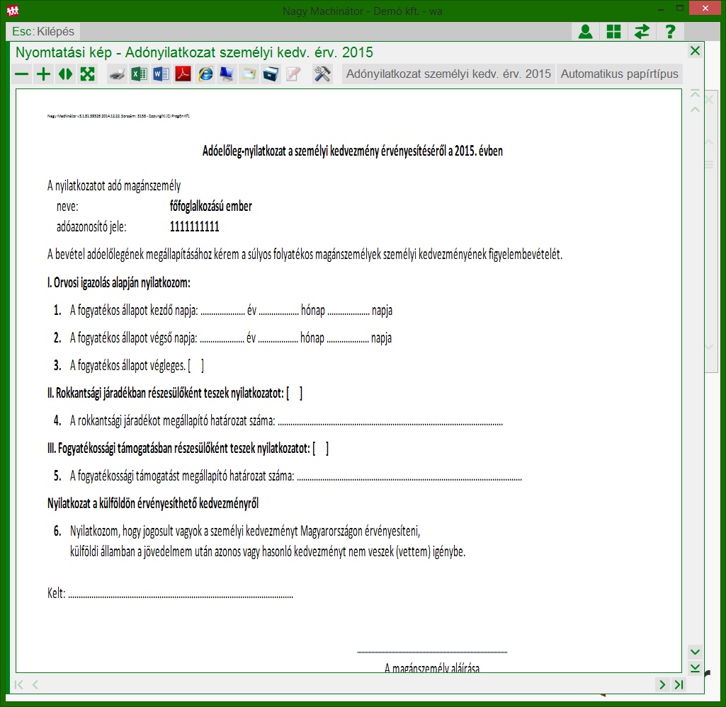 Adóelőleg-nyilatkozat a személyi kedvezmény érvényesítéséről 2015