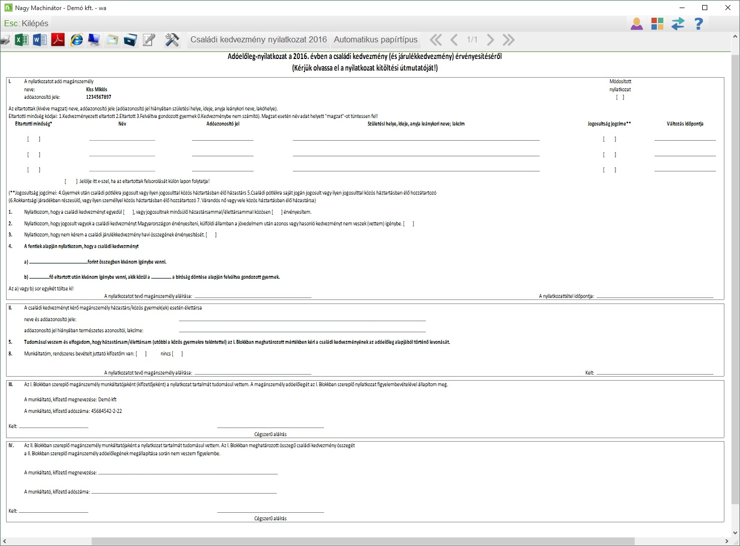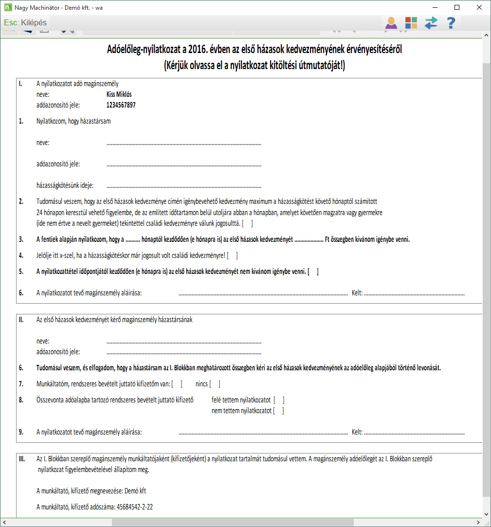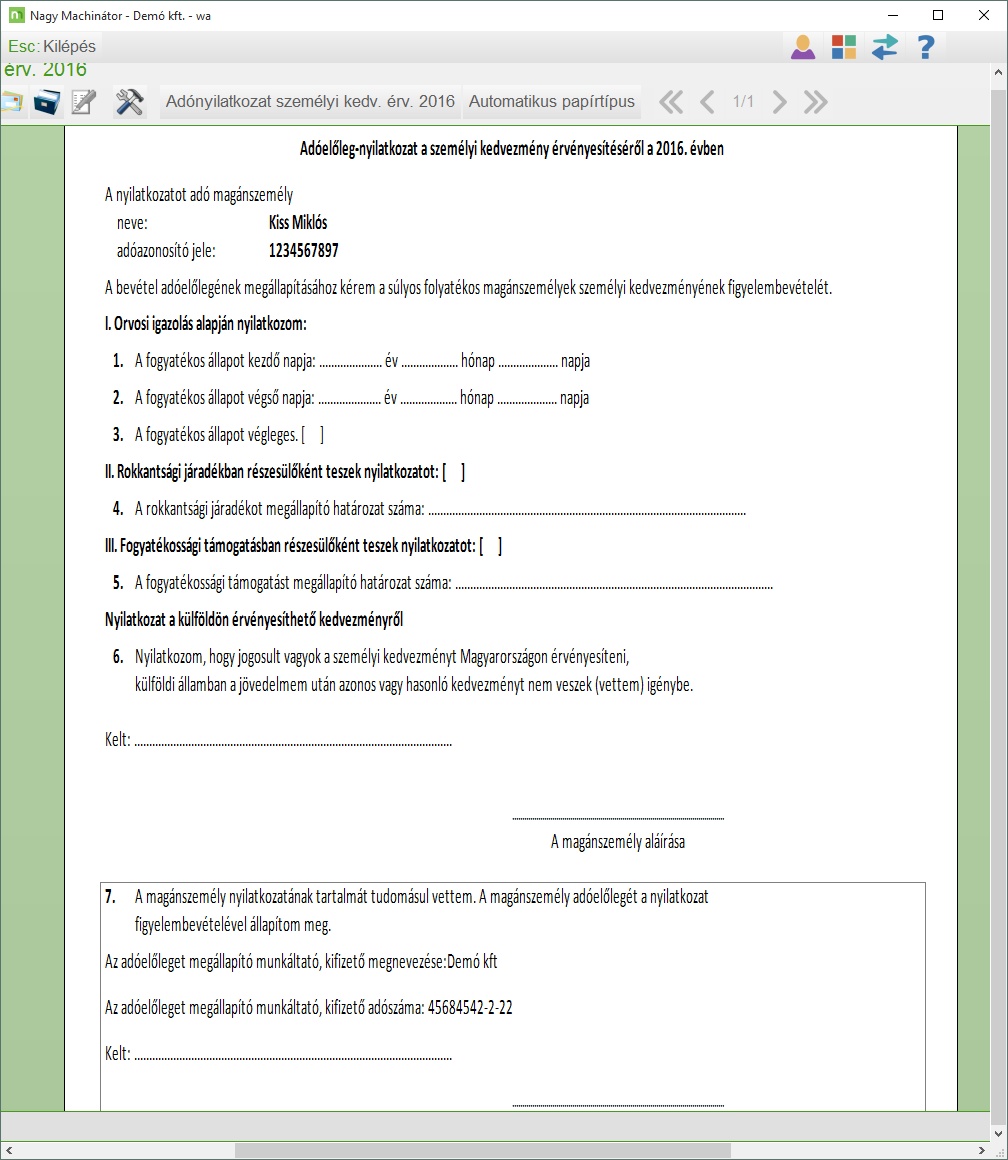 Nyilatkozat a személyi kedvezmény érvényesítéséről