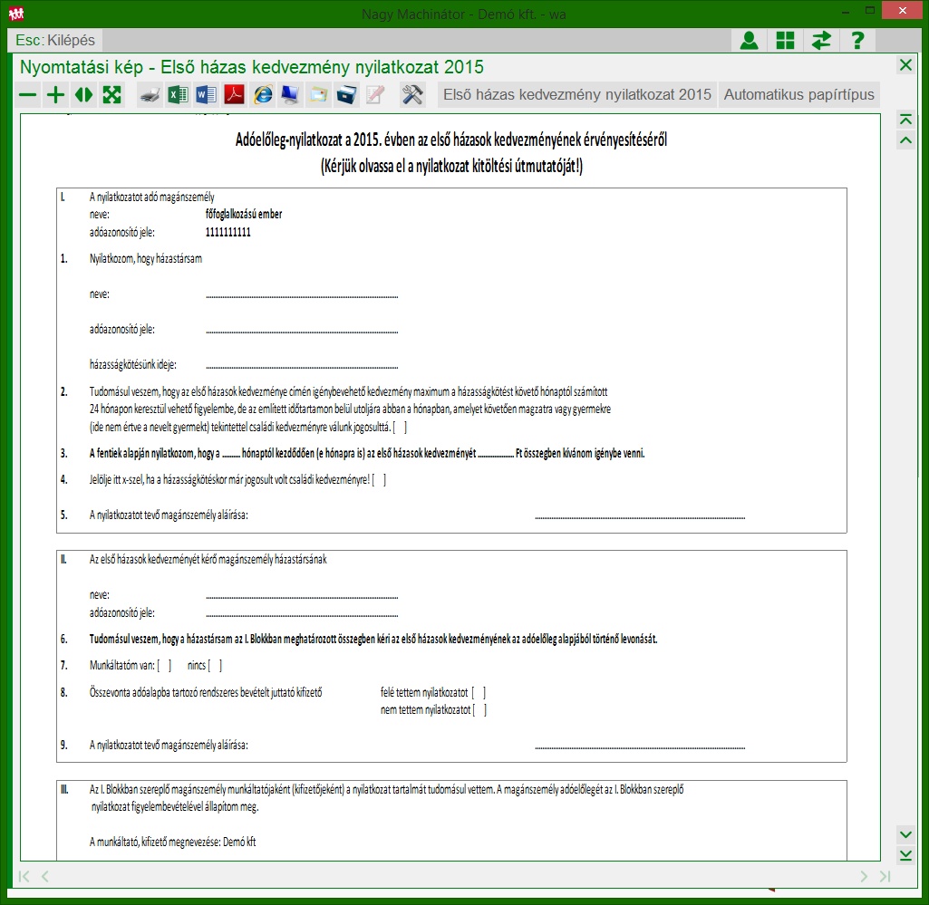Adóelőleg-nyilatkozat az első házas kedvezmény érvényesítéséről 2015