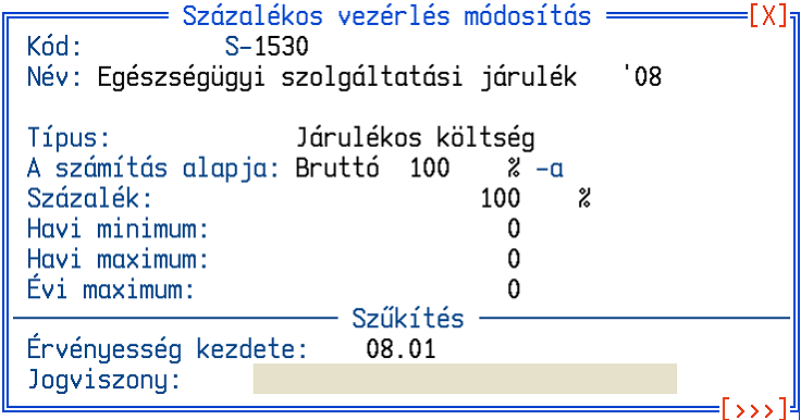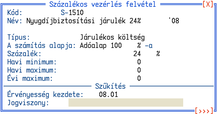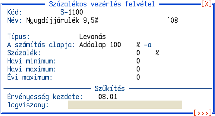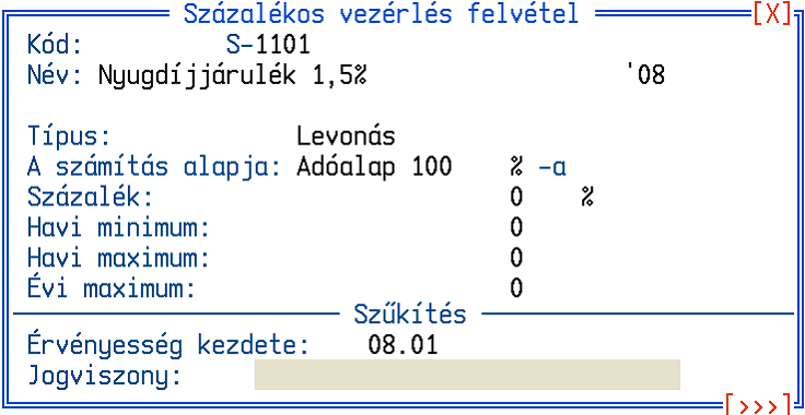 Nyugdíjas esetén viszont 11%-ról 11,1%-ra változott, ezért egy új százalékos vezérlést kell létrehozni.