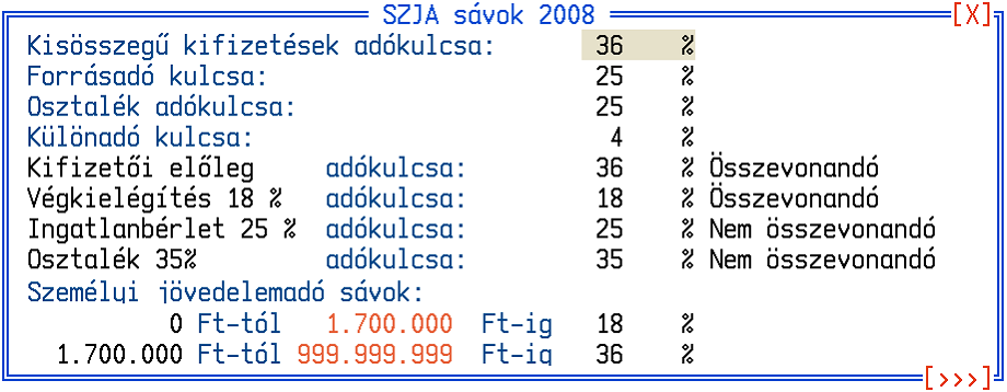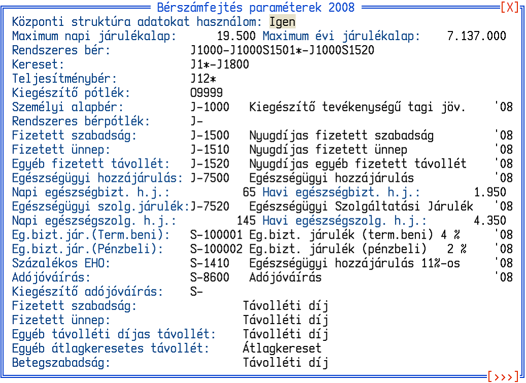 Navigáció: Bérszámfejtés > Éves beállítások A Bérszámfejtés 2008.évi beállításai |