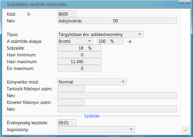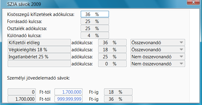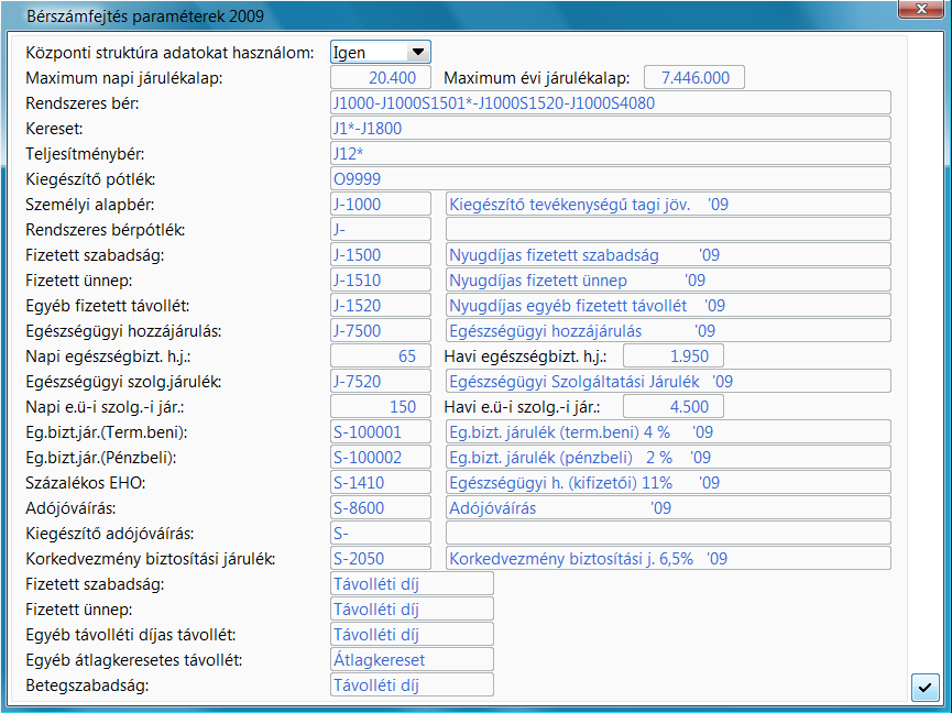 Navigáció: Bérszámfejtés > Éves beállítások 2009.évi beállítások |