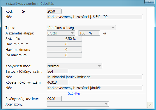 A foglalkoztatót terhelő járulék mértéke továbbra is 29%. Csak a százalékos vezérlések megnevezésében lévő évszám miatt érdemes új százalékos vezérlést felvenni.