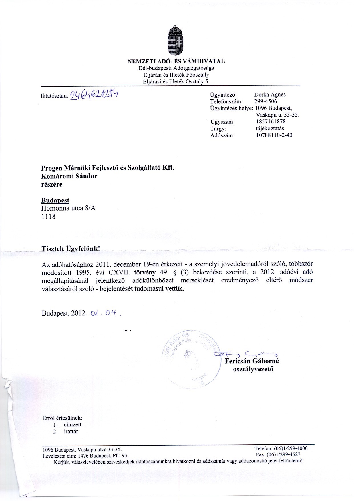 - Az algoritmust az APEH-nek bejelentettük. Az APEH az alábbi levélben vette tudomásul a bejelentést