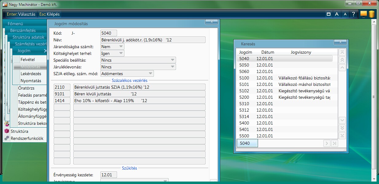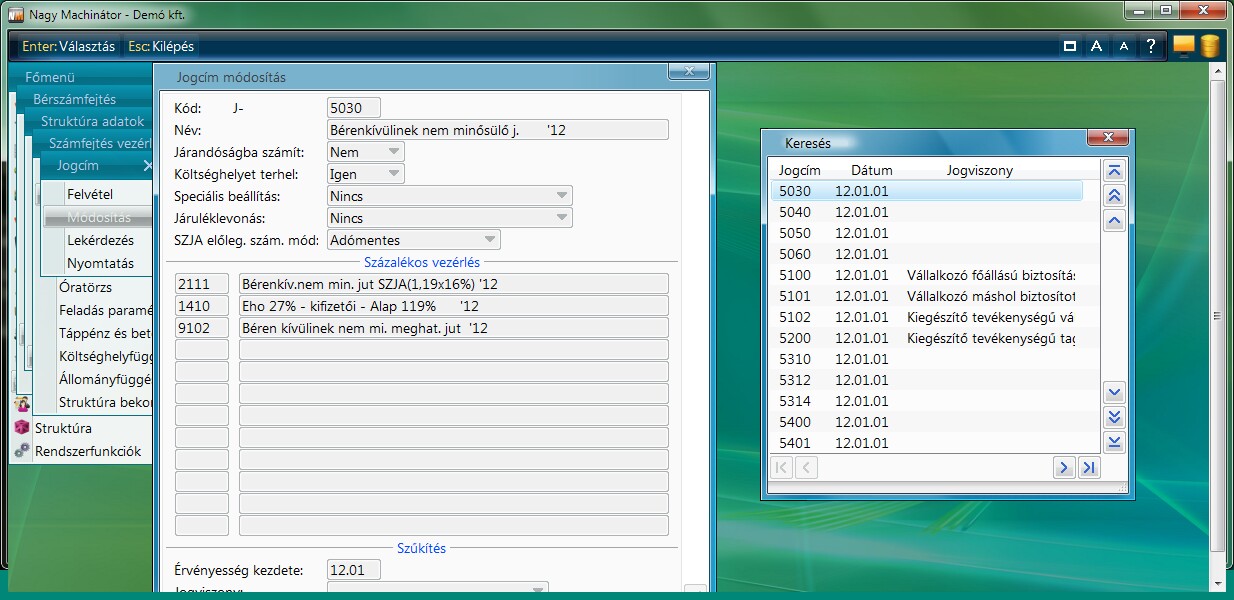 Az alábbi esetekben viszont nem kell a J5030-t, J5040-t vagy a J5050-et használni, mert a jogcímekben be lett építve a megfelelő százalékos vezérlés.