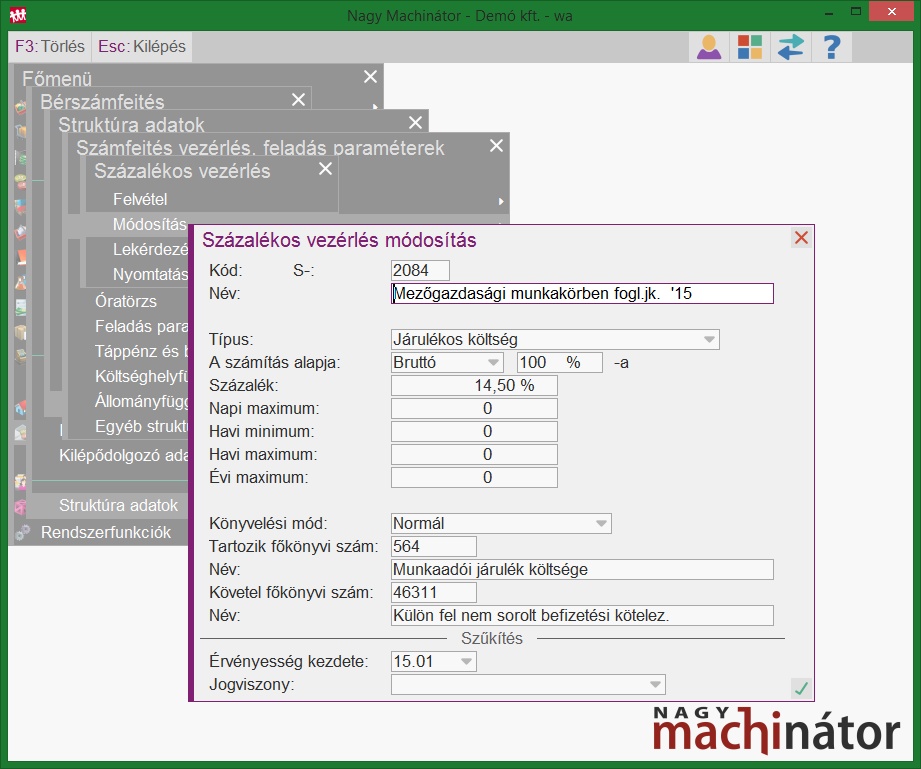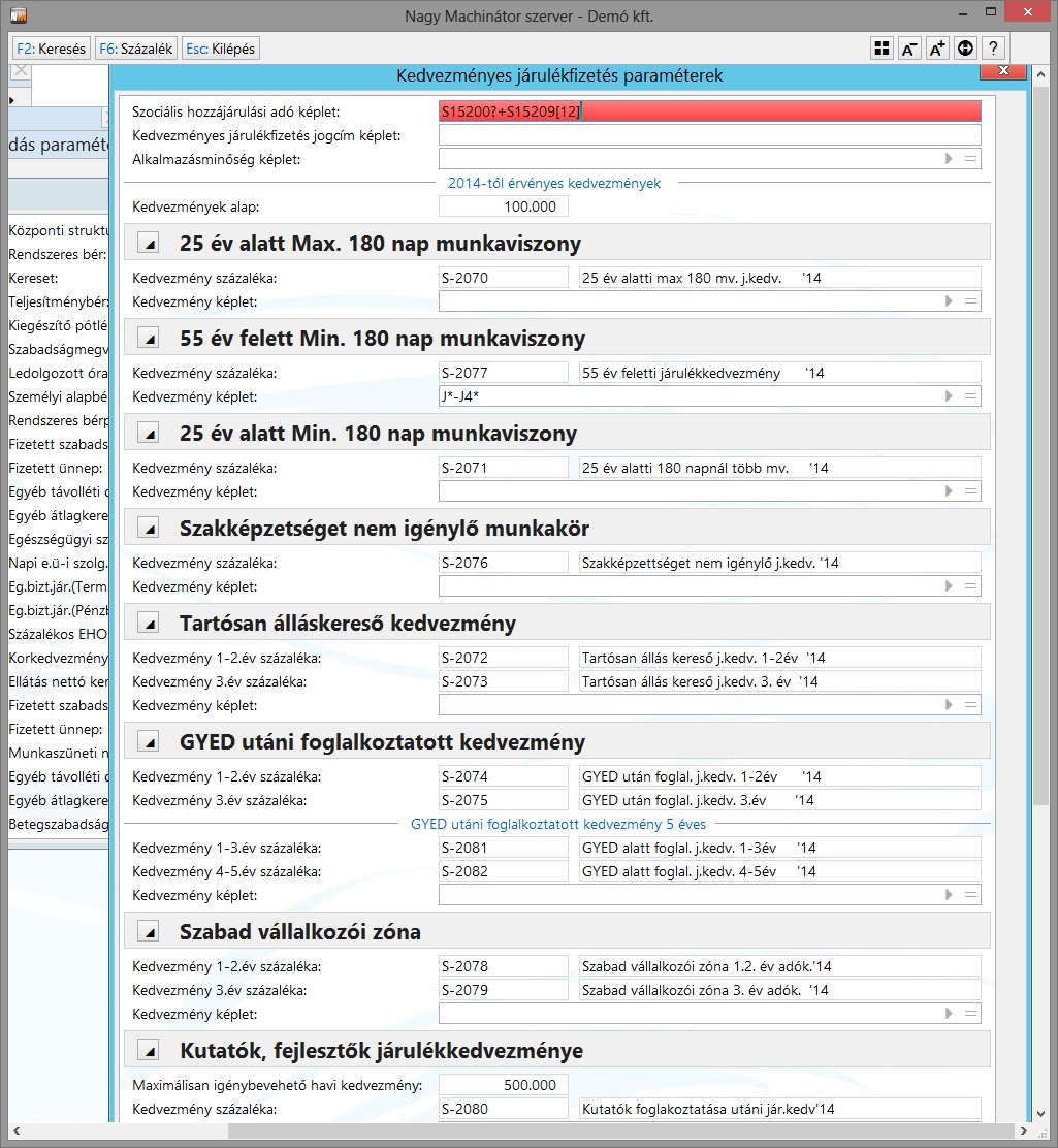 Mezőgazdasági munkakörben foglalkoztatott (25 év feletti és 55 év alatti dolgozó esetén, FEOR 61. csoport, 7333 és 8421 FEOR munkakörben foglalkoztatott) Eat.462/G. § (1) Kedvezmény = 14,5% Kedvezmény alap = Adóalap, maximum 100.000 Ft (S2084) |