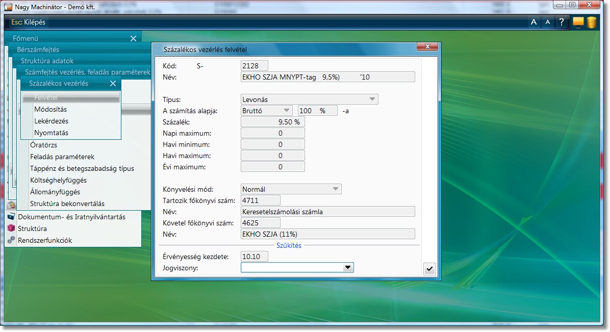 Százalékos vezérléstörzsbe fel kell venni a következő százalékos vezérlést: