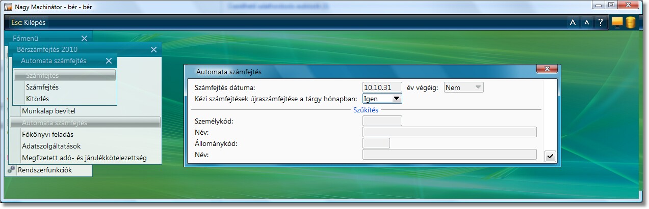 Az október hónapot újra kell számfejteni. Lehetőség van az október havi kézi számfejtéseket az automata számfejtés funkcióban egy lépésben újra leszámfejteni.