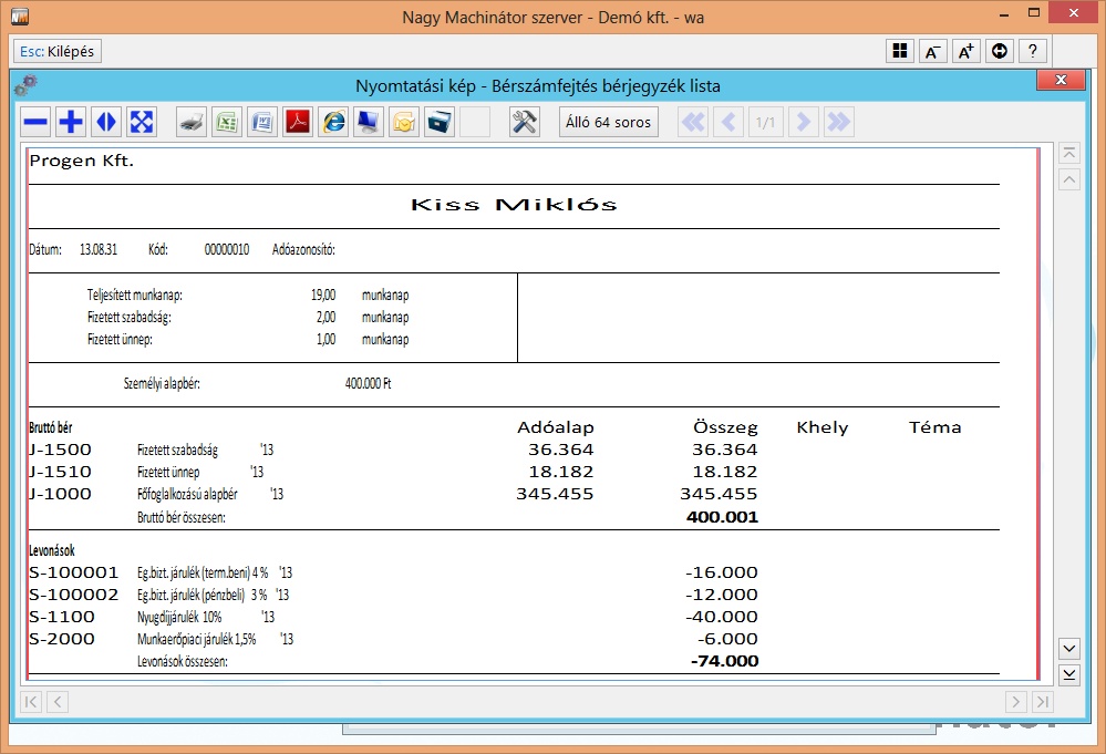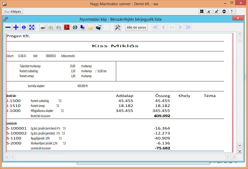 A program a számfejtés paraméterek Fizetett szabadság mezőben meghatározott érték típus fogja leszámfejteni (Távolléti díj)