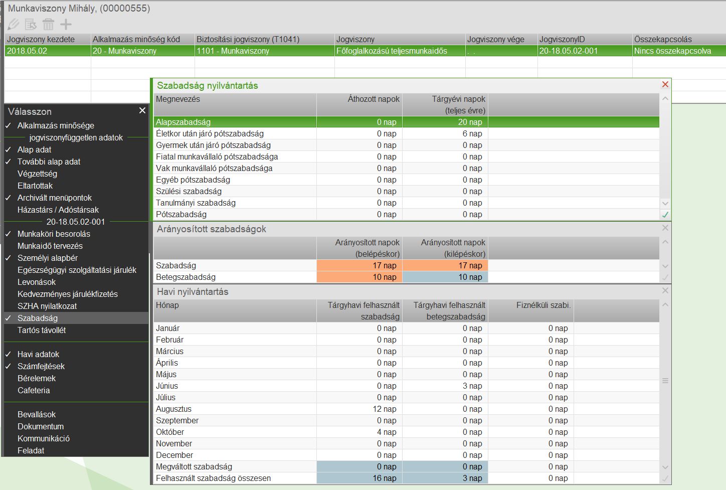 Az aktuális évben az első számfejtéskor a program feltölti a személy szabadság részletező tábláját, amihez figyelembeveszi az életkort, a belépés dátumát, valamint az eltartottakkal kapcsolatosan rögzített adatokat.