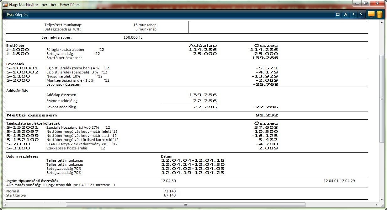 Start-kártya lejár: 2012.04.14 Személyi alapbér: 150.000 Ft