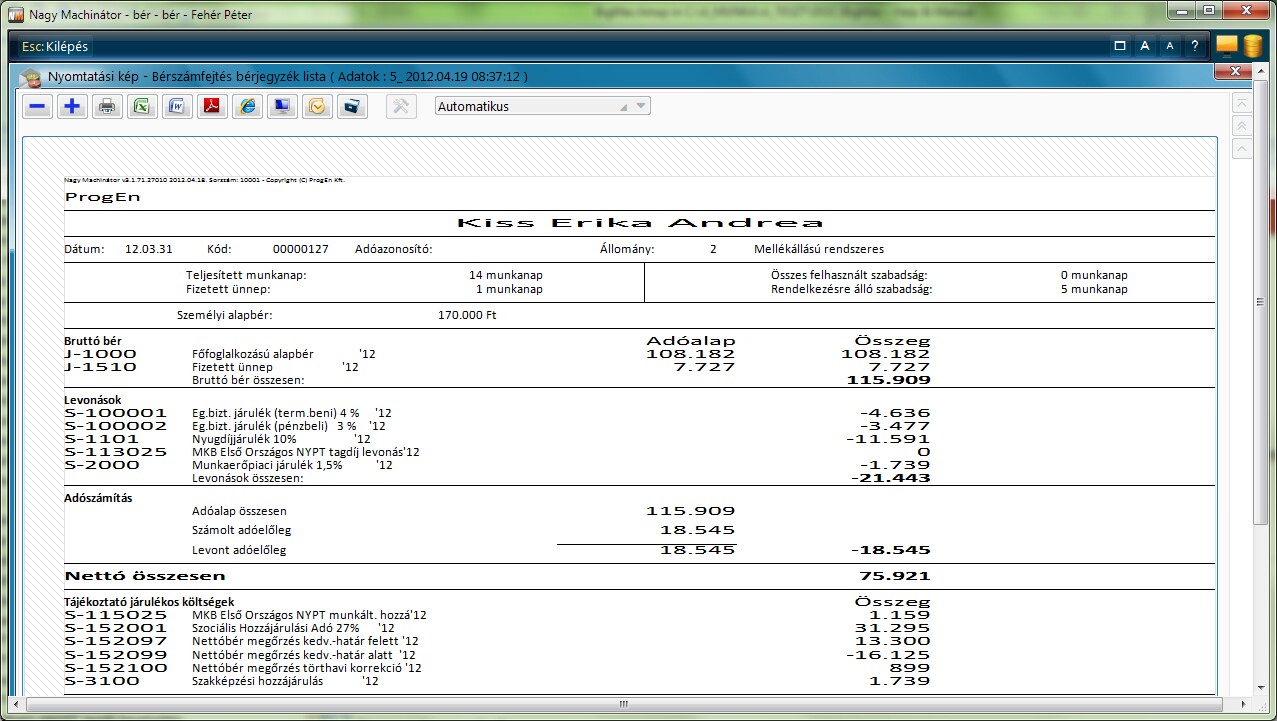 Belépés: 2012.03.12. Személyi alapbér: 170.000 Ft