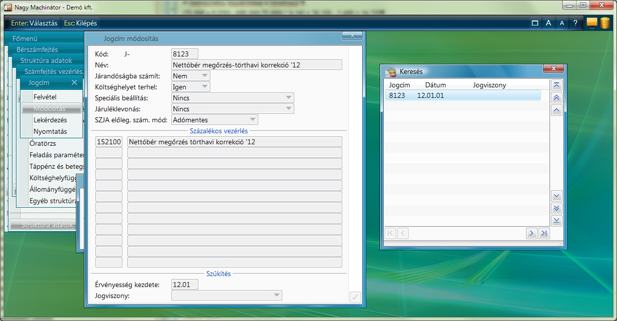A program csak azokat jogcímeket fogja figyelembe venni, amelyek után szociális hozzárjárulási adó fizetési kötelezettség fennáll (Azok a jogcímek szerepelnek a kedvezmény meghatározásában, amelyekben megvan adva a Szociális Hozzájárulási Adó százalékos vezérlés, a számfejtés paraméterek / kevezményes járulékfizetés menüpont Szociális hozzájárulási adó képlet alapján.)